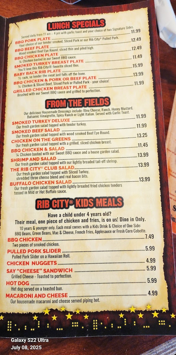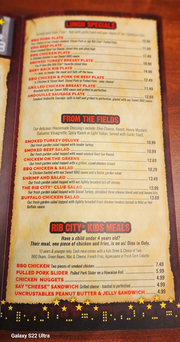 Rib City - Estero Menu